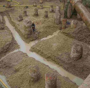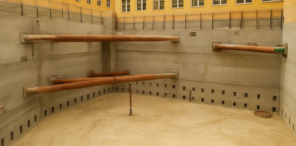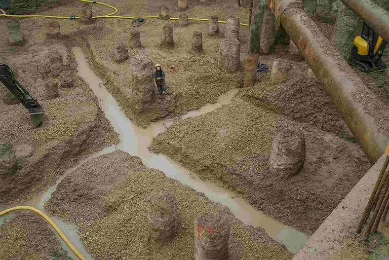 VRD et réseaux profonds : collecteurs d’assainissement, bassins enterrés, galeries techniques,